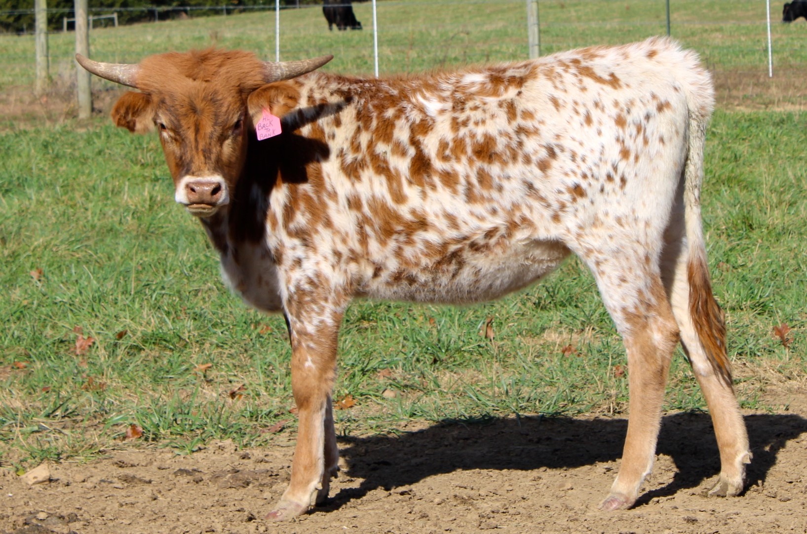 What a beautiful addition to Cold Copper. She is as sweet as she is colorful, and a horn set to die for. She gave us a beautiful heifer by PCC DARK KNIGHT and is currently exposed to POWERWAGON! Check him out