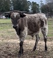 This exciting young bull calf is out of the beautiful brindle nearly 80" T2T huge horned female RNL Wilma, who's pedigree speaks for it's self; Cowboy Up Chex, the legendary cow RC Pacific Mermaid who measured over 90" T2T and produced 95" T2T Texas Mermaid who sold for $200K, LTL Sheza Outside Kat who sold for $350K, and over 90" T2T Majestic Mermaid. If that is not enough, MF Bruce Wayne is sired by PCC Dark Knight, the 86.5 T2T young grulla bull owned by Pace/Cold Copper Partnership. PCC Dark Knight swept the Horn Showcase in 2020 winning TTT in his Class, Futurity Class Winner, Grand Champion Bull and Superior Bull Award. MF Bruce Wayne will be one to watch!
